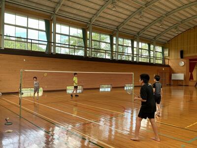 バドミントンをしている4人 |
