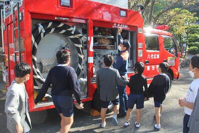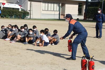 火災避難訓練(11/11) 投稿日時 : 2022/11/10 学校サイト管理者 秋の全国火災予防運動に合わせて、火災避難訓練を行いました。家庭科室から出火した想定で避難しました。放送を確実に聞くことや「お・か・し・も」(押さない・駆けない・しゃべらない・戻らない)の徹底を確認しました。水消火器を使った消火訓練も行いました。最後に、消防車や救急車の見学もしました。命を守る学習を大切にしています。 Tweet {{options.likeCount}} {{options.likeCount}} 0 コメント