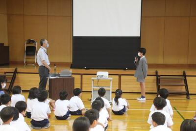 水難の引き渡し・引き取り訓練を前に、種山大洪水の講話を東陽支所のH様にしていただきました。本校は氷川と河俣川の合流地点に位置し、東陽町の中では低い土地にあります。昭和46年に本校周辺が浸水被害を受け、当時小学生だったH様の体験談を聞くことができました。。また、H様は長く消防署にお勤めだったので、過去の水害を例に避難準備や避難行動の大切さについて伝えてくださりました。「自分の命は自分で守る」を意識して行動します。貴重なお話をしてくださったH様、ありがとうございました。
