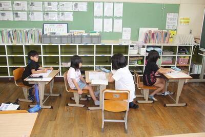 夏休みに入り学校で行うことをいくつか紹介しました。今回は学習会についてです。本校では各学級の担任が参加児童を募り、実施しています。この日は、1・2・3・6年生が夏休みの宿題ドリル集やプリントなどを使って学習しました。夏休みもがんばっている東陽っ子と先生たちです。
