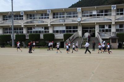 校内なわとび大会が無事終了し、朝の活動では5分間走を行いました。この日の朝の気温が20度あり、季節外れの暖かさの中を、東陽っ子は元気に走りました。6年生の男子の中にはものすごいスピードで走りぬく児童がいます。6年間の積み重ねの素晴らしさ、成長を感じます。たくましく成長している東陽っ子です。