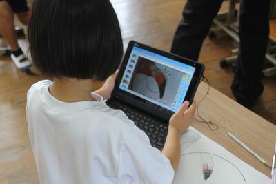 国語科では、説明文「くちばし」を使って、事柄の順序を考えながら、内容の大体を捉える学習をしています。また、「問いと答え」の文章形式、その後の説明を確認しながら読み進めています。この日は、自分が興味を持った鳥のくちばしを説明する文章を書きました。タブレットPCにある資料を見ながら一生懸命書きました。