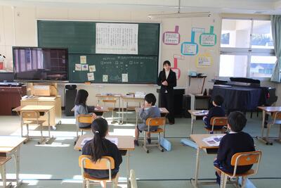 音楽科では、ほしぞらのようすをあらわすおんがくづくりの学習を行いました。3つの場面(ゆうがた・よる・もうすぐあさ)にわけて、ほしぞらのようすをいろいろな楽器で表現しました。すずやトライアングル・タンバリンなどを使って、やさしいほしのようすを表しました。