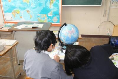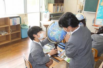 社会科では、日本の国土と世界の国々について学習しています。この日は、世界地図や地球儀を使って、日本や世界の国々の位置や、大陸・海洋などを調べました。これから日本と世界の国々との関連性を学習していきます。