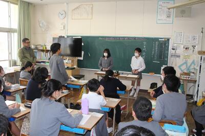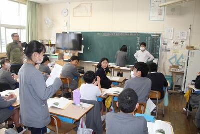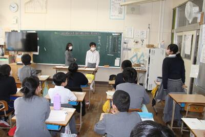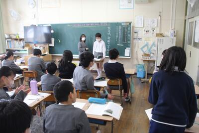 特別の教科道徳では、平成28年熊本地震関連教材「つなぐ~熊本の明日~」に掲載されている「熊本城 奇跡の一本石垣」という教材を使って、あきらめない心について考えました。一本石垣を見た主人公がもう一度ピアノに向かう思いを話し合いました。中学校進学を前に、困難に負けず希望や勇気をもつ大切さを改めて確認しました。