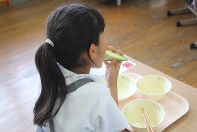6月のふるさとくまさんデー(食育の日)の給食メニューは、メロンと梅干しでした。メロンは八代市で収穫された肥後グリーンという種類で、梅干しは東陽町のW様が梅から自分で作られたものです。メロンの甘さと梅干しのすっぱさがコラボして、どちらもおいしくいただきました。八代市や東陽町の恵みに感謝し、ここに生まれてよかったことを実感する東陽っ子です。関わってくださった多く皆さん、ありがとうございました。