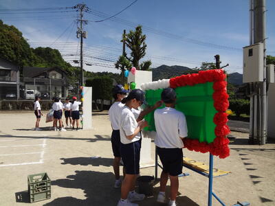 5・6時間目には中学生と小学生5・6年生で運動会準備をしました。