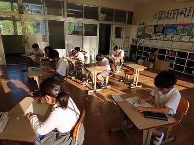 朝の活動でテーマ作文に取り組みました。