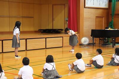 最後に校長から「学校で学んだあいさつを地域に広げよう」と話しました。