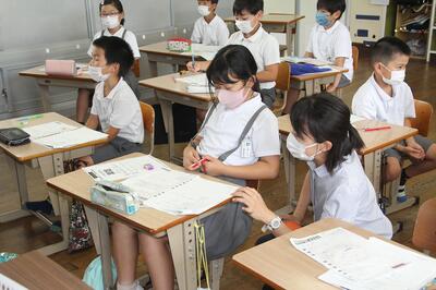 夏休みに入りましたが、本校ではこの日、2年生、3・4年生、5年生の学習会が行われました。1学期末にできなかった学習や夏休みの宿題等を頑張っていました。また、ある先生がオンラインでの研修を受けていました。夏休み中でも、頑張っている姿を見ると、うれしくなりますね。