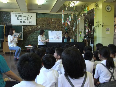 東陽小学校の4,5,6年生が「校歌」と「ともだちは いいもんだ」を披露しました。