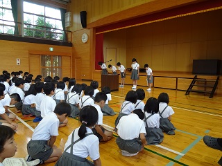 17日(金)に終業式を行いました。子どもたちは、学年毎に一学期の反省を発表しました。明日から夏休みです。健康や安全に気をつけて、楽しい夏休みを送れるようにしましょう。