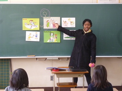 2月28日(火)3時間目にALTレジーナ先生と一緒に英語の学習をしました。今回は、スポーツの名前を教えてもらいました。発音練習をした後、ゲームをして楽しみました。
