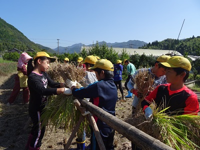 5年生、稲刈りをしました