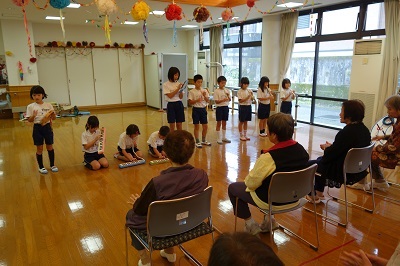 3年生は、みどり交流に行きました。歌をいっしょに歌ったりゲームをしたりしました。合奏「ゆかいな木きん」を演奏しています。利用者の方に喜んでもらいました。
