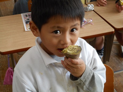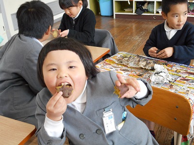 焼き芋サンタさんから準備していただき、4時間目に火に入れ、5時間目にありがたくいただきました。いいクリスマスの思い出になりました。