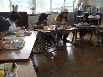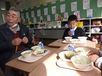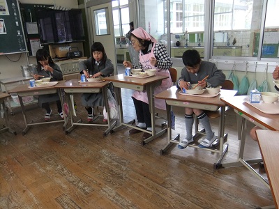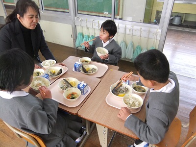 1月24日フリー授業参観の時、ヤマメ給食がありました。
