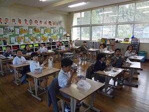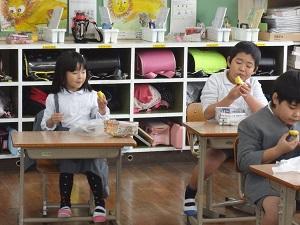 12月11日(火)に行われた太陽保育園との交流会。園児4名と「貨物列車」や「だるまさんがころんだ」などをして楽しみました。「さすが5年生」と思わせるほど、優しく接する姿が見られうれしく思いました。