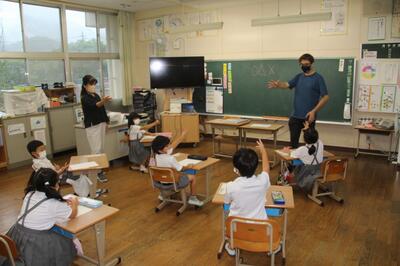 ALTのD先生が8月に母国に帰られるということで、この日が最後の授業でした。D先生は人柄がよく、日本語も堪能なので、東陽っ子の信頼が大きいです。授業だけでなく、休み時間も積極的に一緒に遊んでいただきました。お別れするのはとても残念ですが、D先生の夢を応援したいと思います。D先生、Thank you so much.