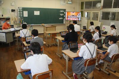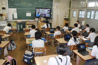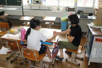 夏休みに入りましたが、本校ではこの日、2年生、3・4年生、5年生の学習会が行われました。1学期末にできなかった学習や夏休みの宿題等を頑張っていました。また、ある先生がオンラインでの研修を受けていました。夏休み中でも、頑張っている姿を見ると、うれしくなりますね。