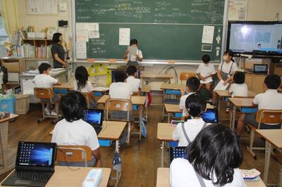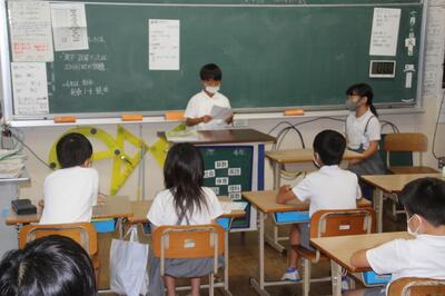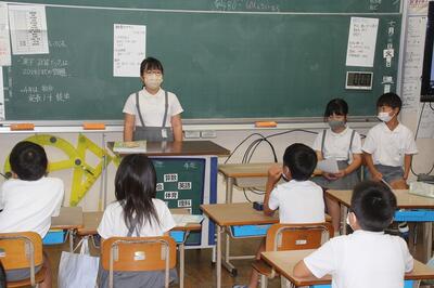 3・4年生の学級でのその練習が行われていました。1学期頑張ったことや心に残った思い出などを発表していました。終業式では、練習した成果を発揮して、堂々と発表してくれることを楽しみにしています。4年生は2学期始業式での担当ですが、原稿を見ないで発表することができました。準備する大切さを3年生は学びました。4年生の◯◯◯さん、ありがとうございました。