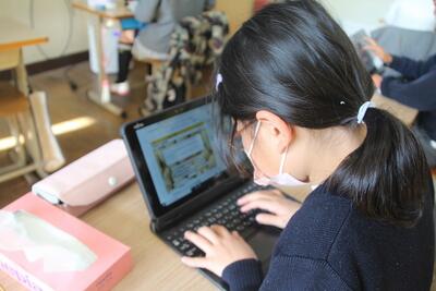 この日はタブレットPCを使って、タイピングの練習をしていました。国語科でローマ字を学習したので、ローマ字入力で打っていました。これができるようになると、タブレットPCを活用した学習がさらに進歩します。がんばれ3年生!
