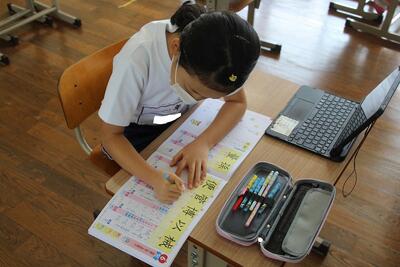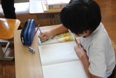新出漢字についてデジタル教科書で書き順を確認しながら、漢字ドリルに記入していました。そこで、HP担当者が学び直したことがありました。「博」のてんは、一番最後に打つ12画目だと思い込んでいましたが、途中の9画目でした。子どもたちの学習に感謝です。