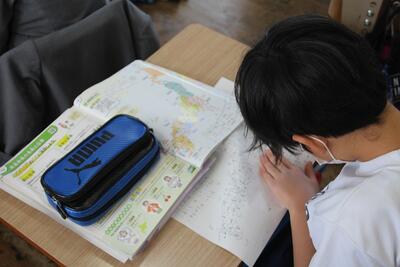 社会科では、都道府県庁所在地を調べていました。1学期に都道府県の名称と位置関係を学習しています。今回はそれを発展させた形となります。熊本県と熊本市など同一名称はいいのですが、異なるところの名称が難しいです。全部で18あります。
