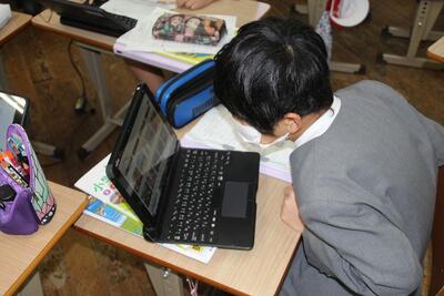 社会科では、熊本県について学習しています。八代市をはじめ熊本市・天草市などを調べました。インターネットで検索すればたくさんの情報に出会います。そこから自分に必要な情報を選択する力を身につけている4年生です。