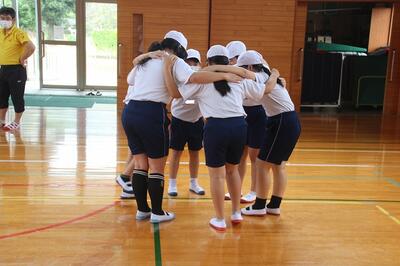 体育科では、ソフトバレーの学習をしています。つなぐことが大切な競技なので、チームワーク・チームプレーが学習のポイントになります。作戦タイムやゲーム前の円陣によって、チームの士気を高めています。これから、個人スキルを上げながら、かけ声やフォーメーション・戦術などの学習を深めていきます。ファイト、東陽っ子6年生!