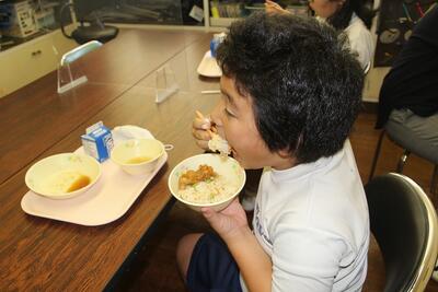 9月の食育の日は、東陽町でとれる食材を使った給食メニューで、ショウガごはんと鶏のかぼすソースかけでした。かぼすの酸味とショウガの辛味が食欲をそそります。食欲の秋真っただ中です。給食に携わるみなさん、ありがとうございます。