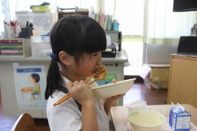 ショウガごはんを食べる5年生 |