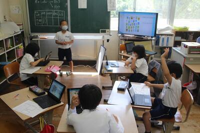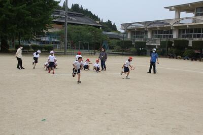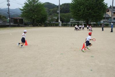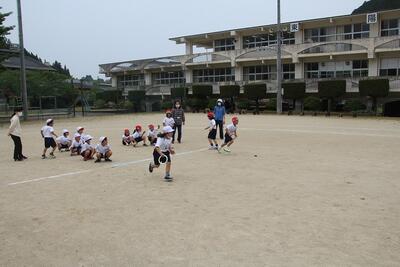 体育科の学習では、1年生と合同で折り返しリレーを行いました。スタートの仕方やコーンの周り方・リングバトンの受け渡しなどを自分なりに考えて活動しました。1学年の経験の差は大きく、さすが2年生だなと感じさせる動きでした。