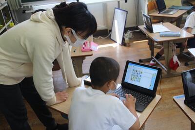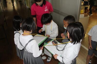 生活科では恒例になっている学校たんけんを行いました。2年生が1年生を連れて学校の中を案内していく学習です。各部屋の名前や使い方などを分かりやすく説明したり、校舎の見取り図をかいた学習カードにシールを貼ったりして、1年生のために活動しました。生き生きと活動する2年生の自己有用感が高まるのを感じました。