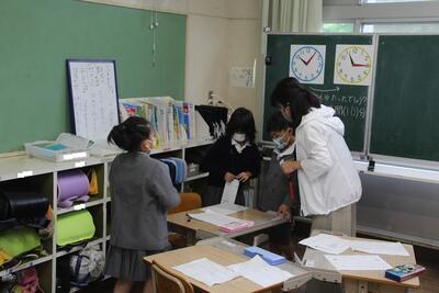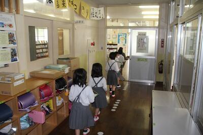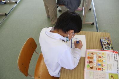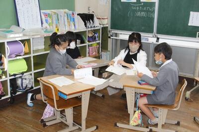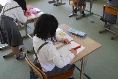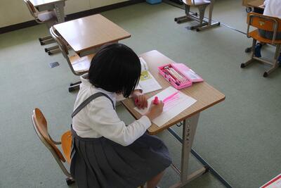 2年生がいつも以上に気合いを入れて活動していました。1年生を連れての学校たんけんの準備でした。先導する人・各部屋の説明をする人・時間を計る人・シールをはる人などの役割を決めました。また、部屋の説明する文章を学習シートに書き込みました。1年生のためにがんばる様子から、お兄さん・お姉さんとしての自覚を感じました。