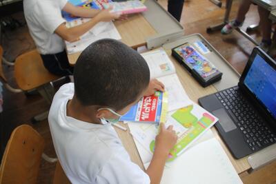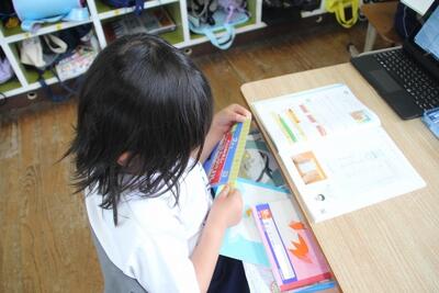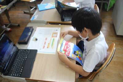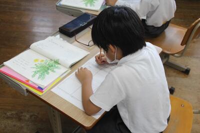 国語科では、説明文「たんぽぽのちえ」を使って、順序に気をつけて読む学習を行っています。この日は、時を表す言葉に着目して、読み進めました。たんぽぽのちえについて順序よく内容を読み取っている2年生です。