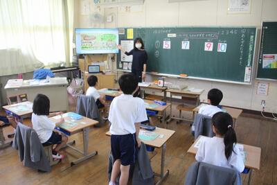 小学校に入学して約3週間が経過しました。学校生活では初めての経験ばかりですが、1年生はがんばっています。登校して元気に「おはようございます」と伝えたり、ランドセルから道具を出して机の引き出しの中に入れたりなど、一つ一つできることを増やしています。この日は、校歌の練習をしたり、あいさつや友達と仲良くなる言葉かけなどについて考えたりしました。1年生のがんばりる姿が、周りのみんなにパワーを与えてくれています。