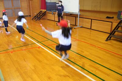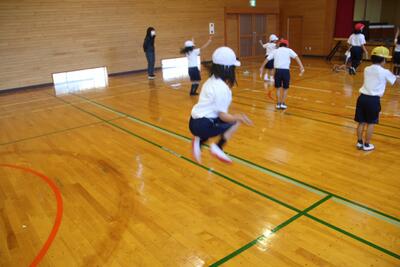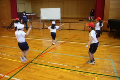 体育科では、体つくり運動の多様な動きをつくる運動遊びの一つとして、短縄を使った運動遊びをしています。縄跳びの経験が少ない1年生ですが、やる気は満々です。上手になりたいと一生懸命練習しました。2月に校内なわとび大会を予定しています。それに向けて冬休みもがんばってくれることでしょう。
