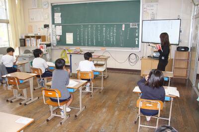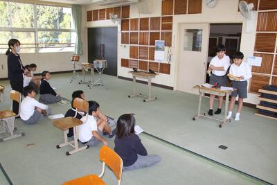 国語科では、物語「プラタナスの木」を使って、登場人物の変化を中心に読み、物語を紹介しようという学習に入りました。この日は、登場人物の気持ちの変化や性格、情景について、場面の移り変わりと結びつけて読み取る学習を行いました。この教材で学んだことを、このあとの物語紹介文を書く学習に生かしていきます。