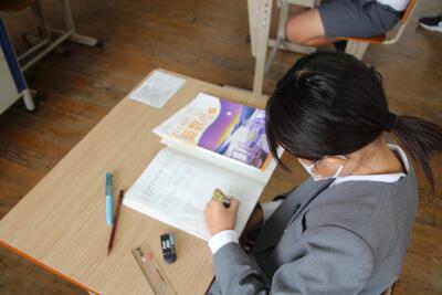 学級活動では、「SNSの使い方について考えよう」という学習を行いました。通信アプリの具体的なやりとりを例に、伝わりにくい言葉や受ける側の気持ちなどについて話し合いました。SNSはすごく便利で使いやすいという利点がありますが、誤った情報が流れたり取り消したい情報を消すことができなかったりする怖さがあります。SNSの特徴を理解した上で活用できる人を育てていきます。