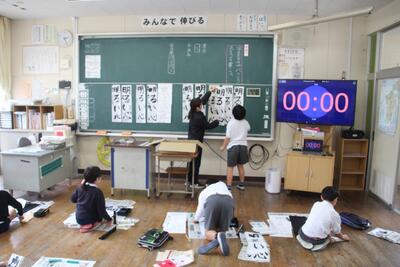1月の書き初め展に向けて、小型条幅紙に「明るい心」の練習を行いました。文字の中心や漢字とひらがなのバランス等に気をつけながら、一画一画丁寧に書きました。集中して書く力が伸びてきた4年生です。