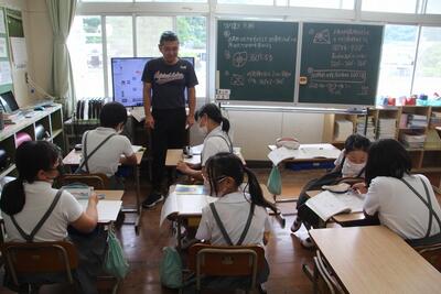 この日は、ALTのA先生との最後の授業でした。そこで、感謝の言葉を英語で一人一人伝えました。難しい英語については先生がサポートしました。”Thank you so much.” など臆することなく伝える5年生の姿に、これまでの学習の積み重ねを感じました。