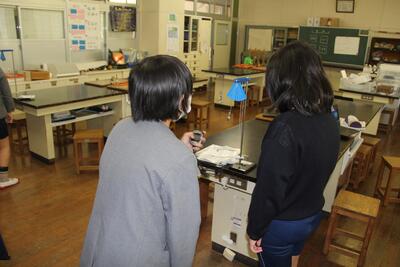 理科では、ふりこの性質について学習しています。この日は、振り子が一往復する時間と振れ幅について実験しました。振れ幅の条件だけを変えて、振り子を動かし、10往復する時間を計時しました。角度を変えることと10往復をカウントすることが難しいようでした。