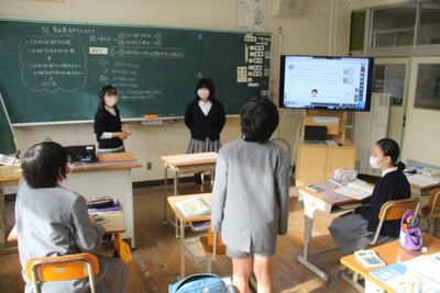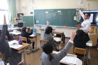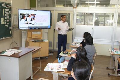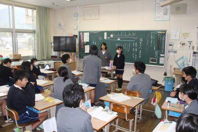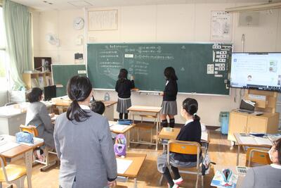 国語科では、資料などを用いた文章の効果を考え、それを生かして意見文を書く学習をしています。この日は、説明文「固有種が教えてくれること」の中に用いられている資料や図の効果について考えました。グループに分かれて考えをまとめ、全体で交流しました。