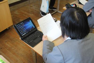 家庭科では、「食べて元気に」という食に関する学習をしています。この日は、食品の栄養素やごはんとみそ汁の作り方について学習しました。栄養素の観点からみそ汁の実を考えました。3学期に行う調理実習に備えて、ごはんの炊き方についても確認しました。