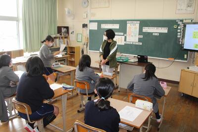 学級活動では、性教育の取組の一つ「成長する体」について学習しました。 体の成長に伴って現れる第二次性徴を正しく理解し、男女の特徴や個人差に対して、思いやりの心と互いに認め合う心を育てることがねらいです。これから起こる体の変化を正しく理解し、自分の気づきや思いを伝え合いました。