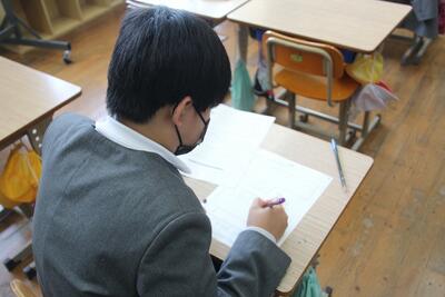 全国学力・学習状況調査の国語と算数を行いました。欠席がなく6年生全員が受けてくれたことが、何よりもすばらしいことです。静かな教室に、鉛筆で解答用紙に書き込む音だけが響いていました。この調査で出てきた課題について、これから学校全体で授業改善や学習習慣・生活習慣の見直しなどに取り組む予定です。6年生の皆さん、お疲れさまでした。