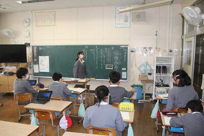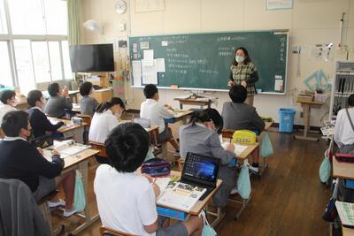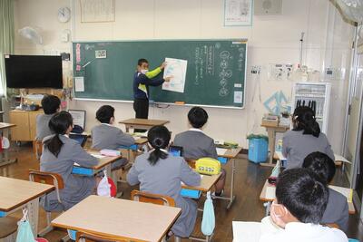 国語科では、物語「帰り道」を使って、視点のちがいに着目して読み、感想をまとめる学習をしています。この日は、2人の登場人物の人柄について読み取りました。事実と根拠・理由をあげて、それぞれが考える登場人物について交流しました。登場人物の心情と読み手である6年生の気持ちがつながるところがあるようです。