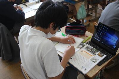 社会科では、「憲法とわたしたちの暮らし」の学習に入りました。さまざまな人が使いやすいように公共施設のバリアフリー設備の整備が行われています。その根拠となる法律について調べ、政治の仕組みや国民生活との関連について学習していきます。私たちの生活が法律によって守られていることを考えていきます。