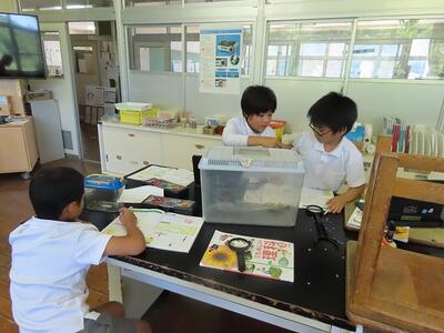 5年生は理科の時間に、6年生は国語の時間に、学習リーダーを中心にそれぞれ学び合っていました。